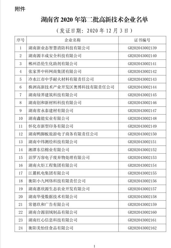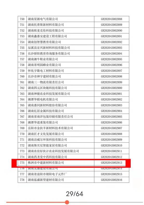 株洲市中建新材料通過高新技術企業(yè)認定的公告